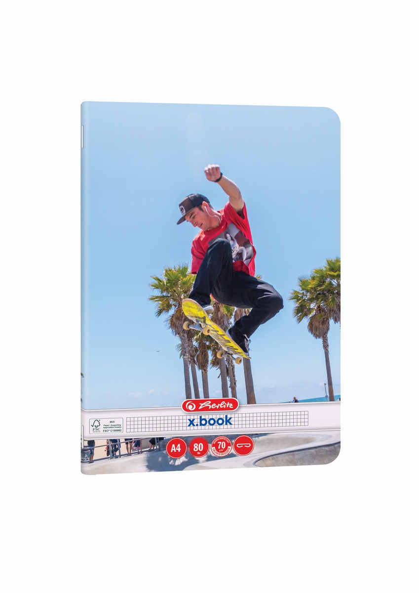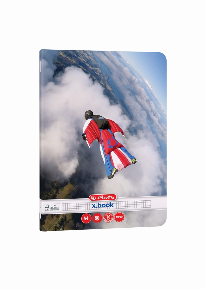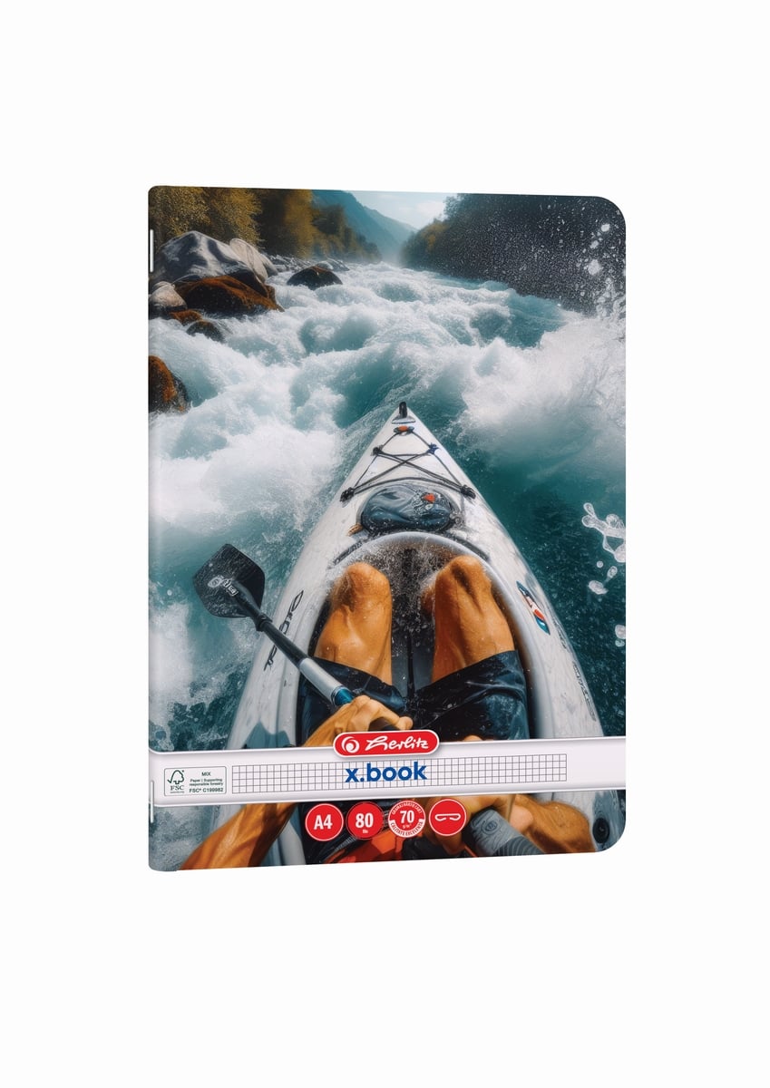 Caiet, format A4, coperti din carton dublu cretat, lucios, colturi rotunjite, hartie 70 g/mp, 80 file, patratele, capsat, motiv Extreme.