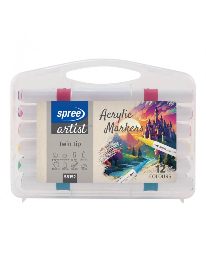 Spree Marker acrilic 12 culori 2 capete Spree