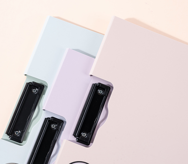 Spre deosebire de clipboardurile standard, mecanismul de prindere a foilor este poziționat pe latura lungă