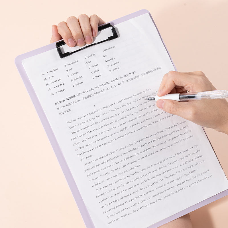 Clipboard simplu Deli, format A4, din PP foam cu 3 straturi, rezistent, cu grosimea de 1.8mm. Clips din metal ce asigura o prindere ferma a documentelor. Colturi rotunjite. Suprafata neteda pentru un confort suplimentar. Culori asortate din gama Macarons: roz, mov si albastru.