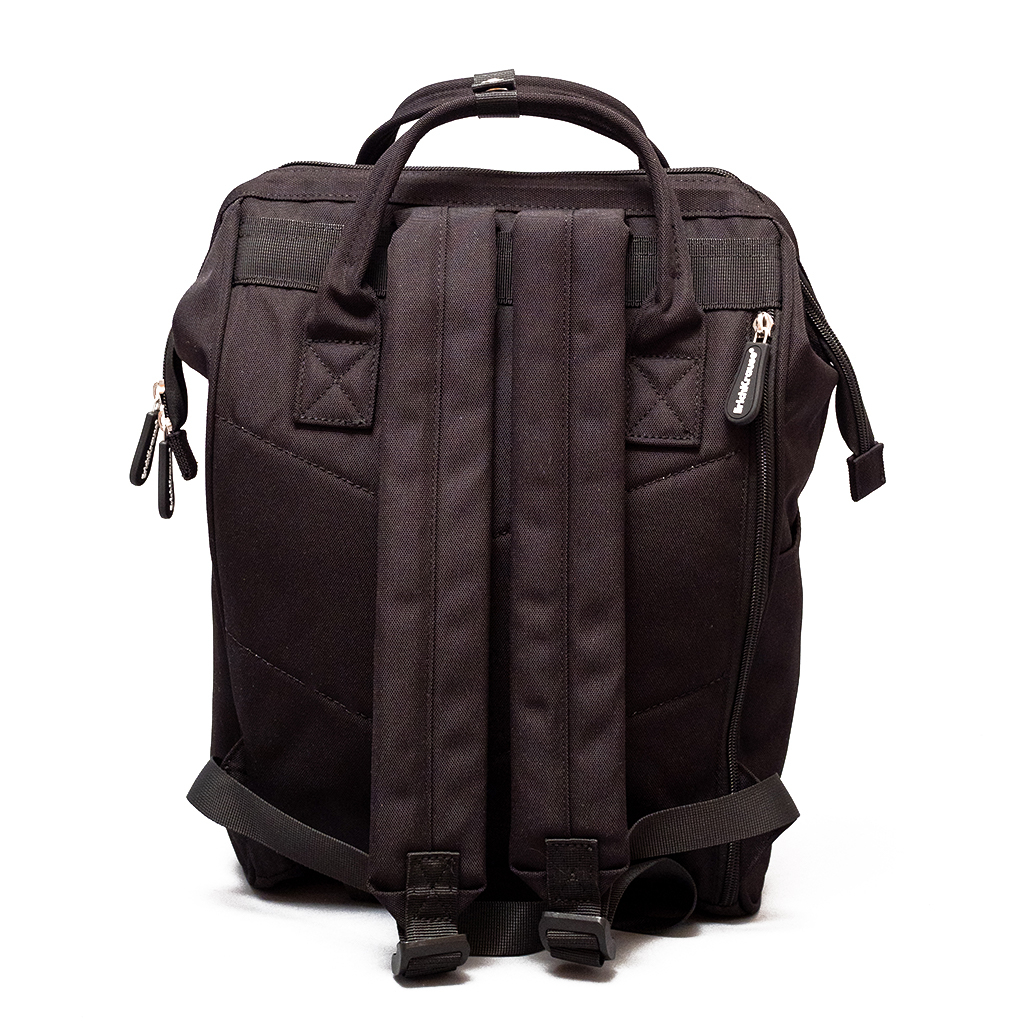 La exterior, există un buzunar frontal cu fermoar, precum și două buzunare laterale pentru o sticlă de apă sau o umbrelă.